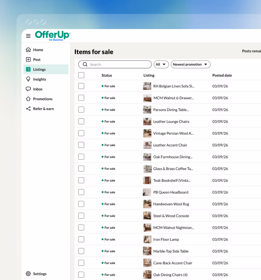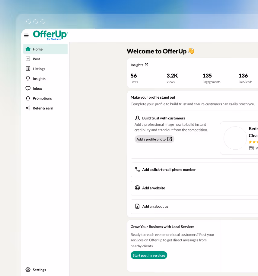 OfferUp connects local businesses with millions of high-intent shoppers. Simple tools and native listings help you stand out on one of the largest local shopping apps in the U.S.